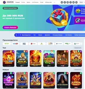 Совершив в Champion Casino вход, клиент может опробовать любой понравившийся слот. Единственные ограничения — бюджет игрока. Советуем также ознакомится со списком — популярные онлайн казино.
